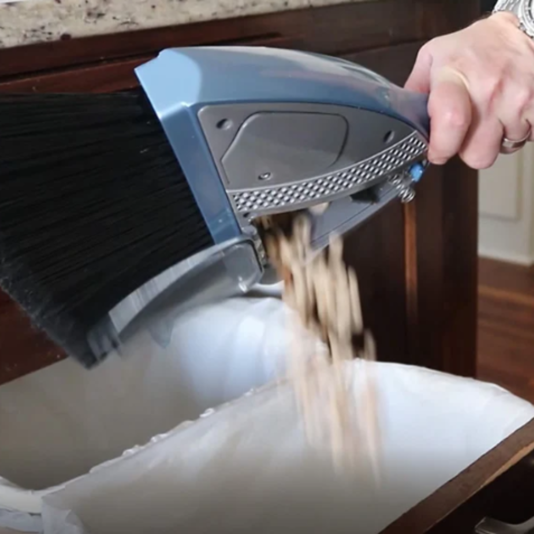 Barre y almacena la suciedad directamente en su depósito integrado, sin necesidad de pala ni contacto con el polvo.