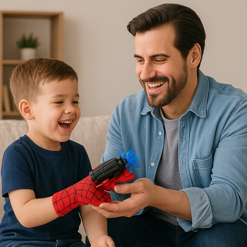 A mis hijos les fascina la idea de lanzar telarañas. Se divierten mucho actuando como superhéroes, y el guante es cómodo y fácil de usar.