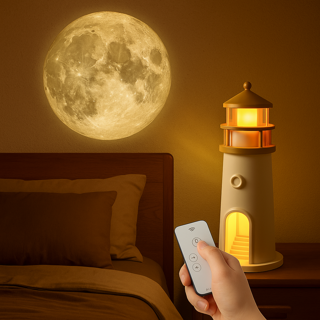 La proyección es tan real que parece que la luna estuviera dentro de mi habitación. La luz es suave, cálida y me ayuda muchísimo a relajarme antes de dormir. Además, el diseño en forma de faro es precioso y combina con todo.