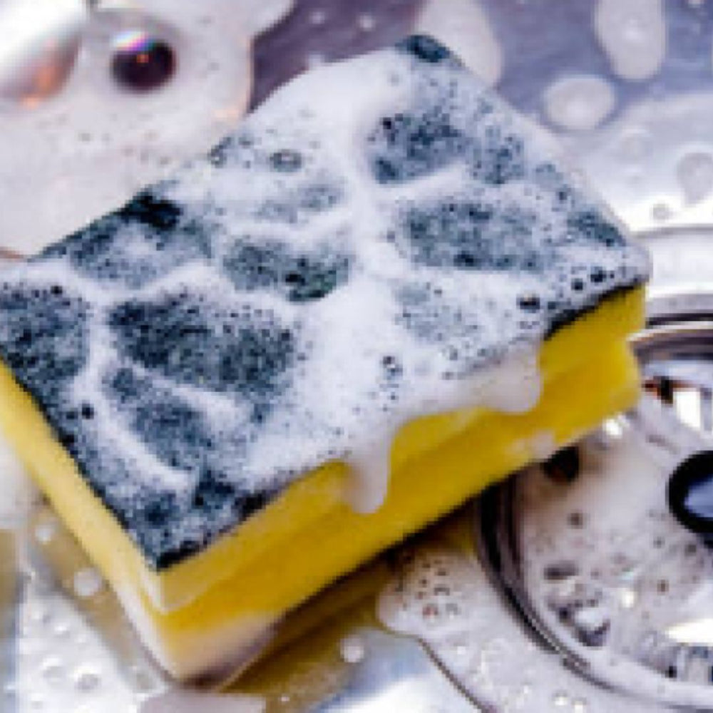 Mantén tu esponjilla y jabón siempre a la mano, sin charcos ni desorden en el lavaplatos.