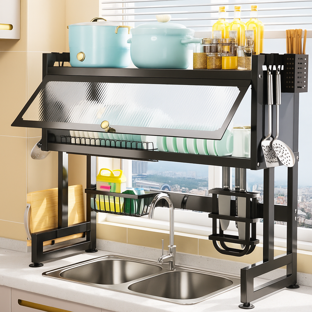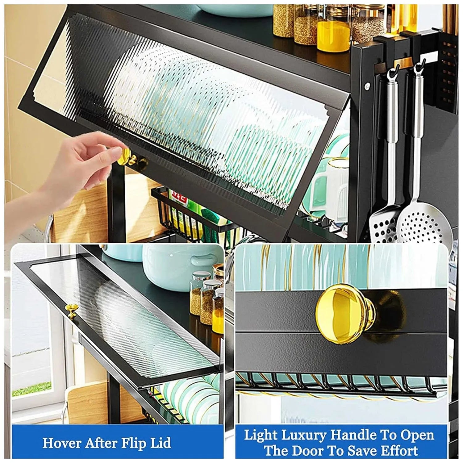 Mantiene tus platos protegidos del polvo, salpicaduras y bacterias gracias a su puerta acrílica.